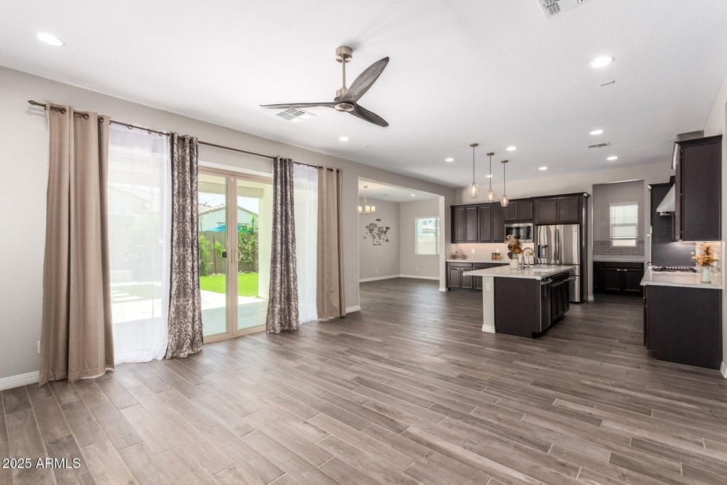 A beautiful 4 bed, 3.5 bath property is now on the market! Featuring charming curb appeal, a low-care front yard, and a 3 car garage! Discover a spacious open floor plan w/stylish wood-look tile flooring and neutral palette throughout. The kitchen offers espresso cabinetry w/granite counters, a walk-in pantry, subway tile backsplash, SS appliances, pendant lighting, and an island w/a breakfast bar. Continue upstairs and into the cozy loft w/soft carpet, where you can spend a relaxing Sunday afternoon. Primary bedroom showcases a walk-in closet and a private bath w/dual vanities. Don't forget about the sizeable den, ideal for an office! Lastly, the wonderful backyard includes a covered patio and artificial turf! Don't miss out!